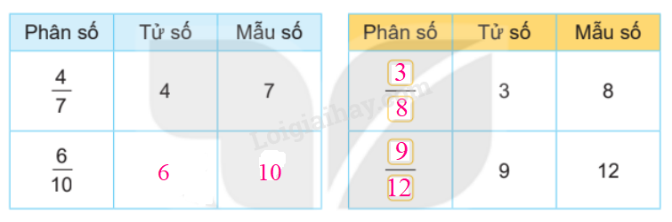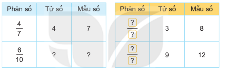 Mỗi phân số có tử số và mẫu số. Tử số là số tự nhiên viết trên gạch ngang, mẫu số là số tự nhiên khác 0 viết dưới gạch ngang.