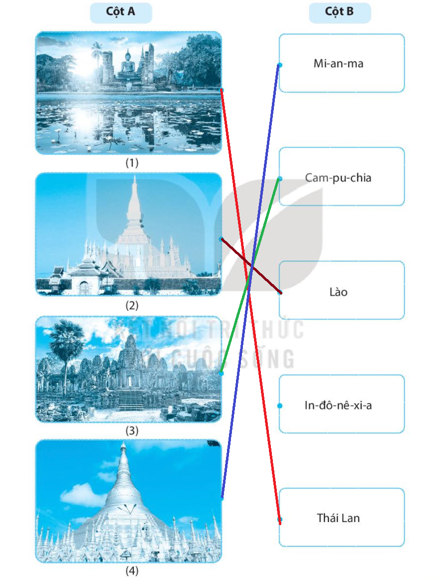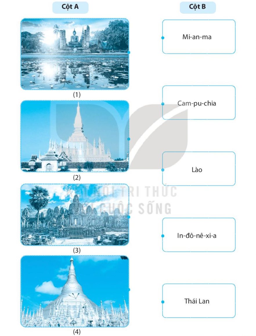 Hãy ghép hình ảnh các di tích lịch sử ở cột A với tên nước ở cột B sao cho phù hợp.
