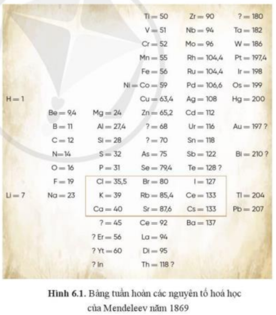 1. Trong hình 6.1, Mendeleev có ghi: Au = 197? và Bi = 210?. Theo em, ý nghĩa của dấu hỏi chấm ở đây là gì?