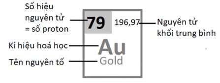 A. Vàng có kí hiệu là Au, nguyên tử có 79 proton, nguyên tử khối trung bình là 196,97.