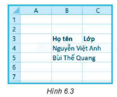 Trong trường hợp độ rộng cột không đủ hiển thị dữ liệu như Hình 6.3, em cần làm gì để dữ liệu ở cột B không tràn sang cột C?