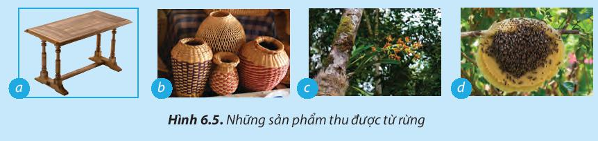 1.Hãy quan sát Hình 6.5 và kể tên những sản phẩm thu được từ rừng phục vụ cho đời sống.