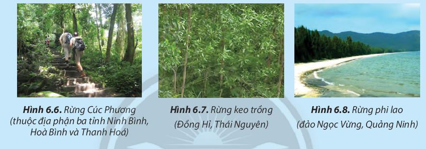Quan sát vào hình 6.6 là rừng Cúc Phương, hình 6.7 là rừng keo trồng và hình 6.8 là rừng phi lao.