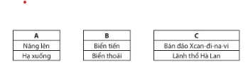 Em hãy nối các ý ở cột A với các ý ở cột B,C sao cho phù hợp về nội dung vận động theo phương thẳng đứng