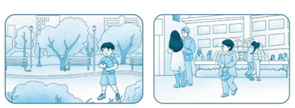Hãy điền các tình huống bị lạc vào dưới mỗi bức tranh mà em cho là phù hợp.