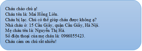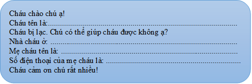 Điền vào chỗ trống những thông tin của em trong tình huống em đề nghị chú công an giúp đỡ khi bị lạc