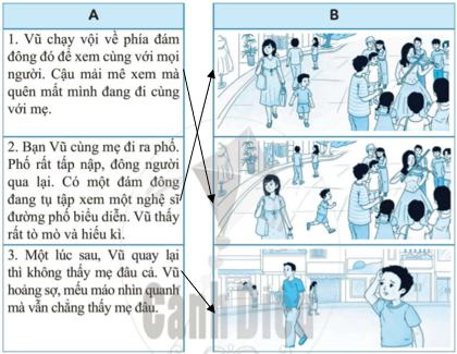 Em hãy nối ý ở cột A với tranh ở cột B sao cho phù hợp với nội dung câu chuyện “Một lần ra phố”.