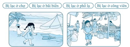 Hãy điền các tình huống bị lạc vào dưới mỗi bức tranh mà em cho là phù hợp.