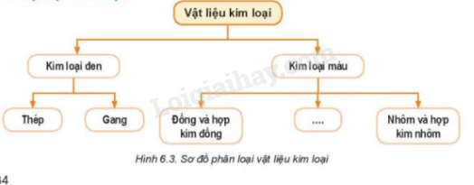 Quan sát Hình 6.3 và cho biết: Vật liệu kim loại được chia thành mấy loại, là những loại nào? Mỗi loại gồm những vật liệu (hợp kim) gì?