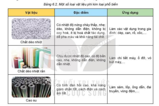 Quan sát bảng 6.2 để xác định các sản phẩm nêu trên làm từ vật liệu gì?