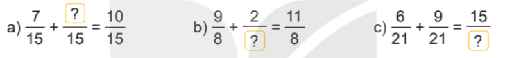 – Dựa vào cách cộnghai phân số cùng mẫu số để tìm số còn thiếu ở ô trống