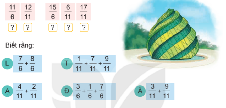 Thực hiện cộng các phân số đã cho để giải ô chữ của đề bài.