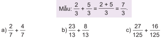 – Muốn cộng hai phân số cùng mẫu số, ta cộng hai tử số với nhau và giữ nguyên mẫu số.