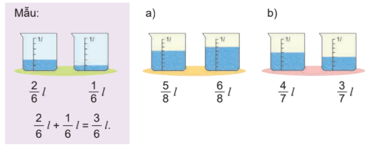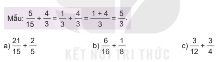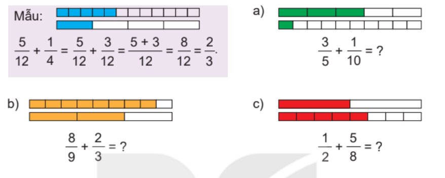 – Quan sát mẫu rồi thực hiện phép tính cộng hai phân số.