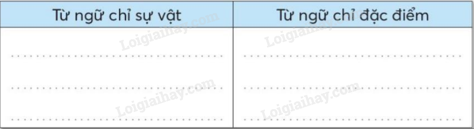Xếp các từ ngữ trong ngoặc đơn vào cột phù hợp.