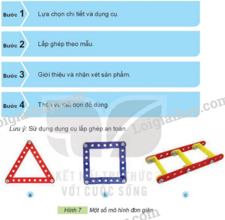 Em hãy quan sát mẫu trong Hình 7 rồi thực hành lắp ghép theo các bước dưới đây.