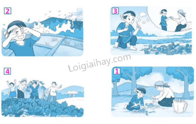 Em đọc lại câu chuyện Sự tích cây khoai lang vào quan sát kĩ các bức tranh để sắp xếp đúng thứ tự.