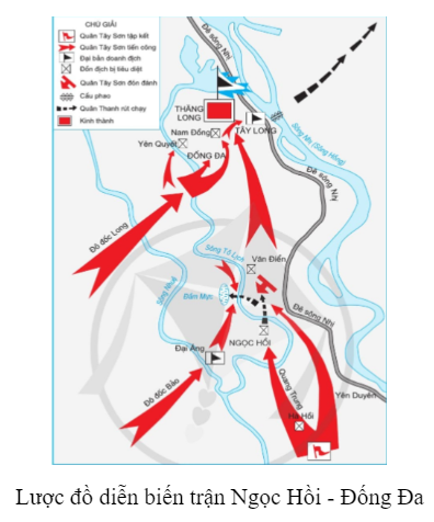 Bước 3: Quan sát Hình 6 để hiểu được diễn biến của trận Ngọc Hồi – Đống Đa trong cuộc kháng chiến chống quân Thanh năm 1789.