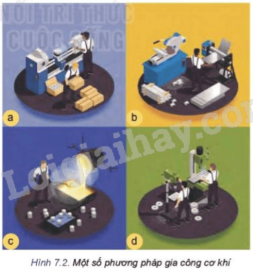 Quan sát hình 7.2 và nêu tên các Phương pháp gia công cơ khí.