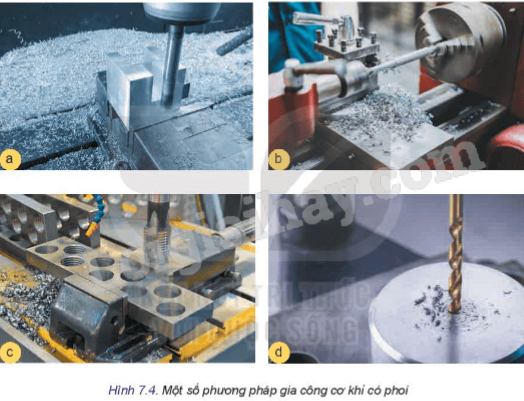 Quan sát Hình 7.4 giới thiệu những Phương pháp gia công cơ khí có phoi nào?