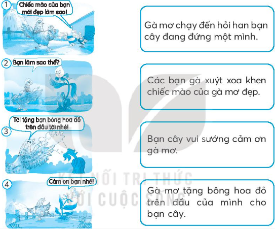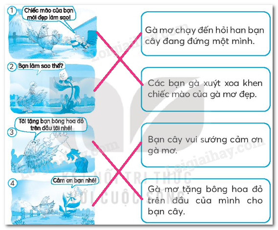 Dựa vào nội dung câu chuyện Sự tích hoa mài gà, nối tranh minh họa với nội dung phù hợp.