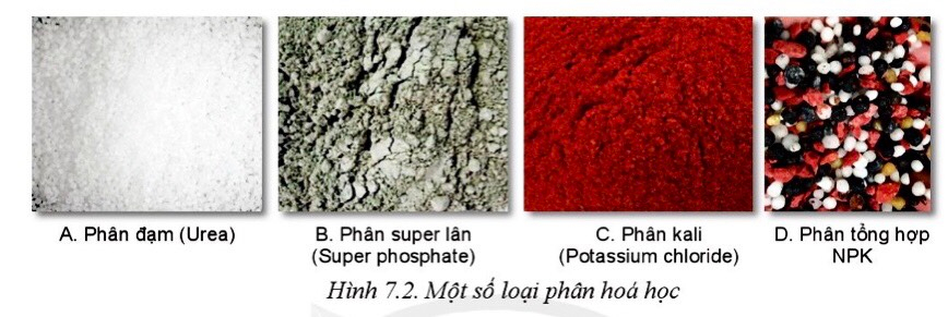 2. Kể tên và cho biết đặc điểm của các loại phân bón hóa học trong Hình 7.2