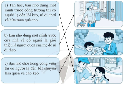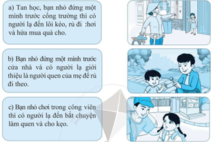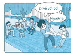 trong mỗi bức tranh thể hiện người em có thể nhờ giúp đỡ khi tiếp xúc với người lạ.