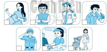 trong mỗi bức tranh thể hiện người em có thể nhờ giúp đỡ khi tiếp xúc với người lạ.