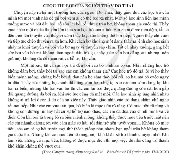 a) Khi bơi về, dù rất mệt và phải bơi gấp đôi quãng đường nhưng các bạn học sinh vẫn bơi vào bờ an toàn, vì: các bạn học sinh đã xác định được mục tiêu rõ ràng, từ đó, các bạn ấy đã phấn đấu, nỗ lực hết mình để đạt được mục tiêu.