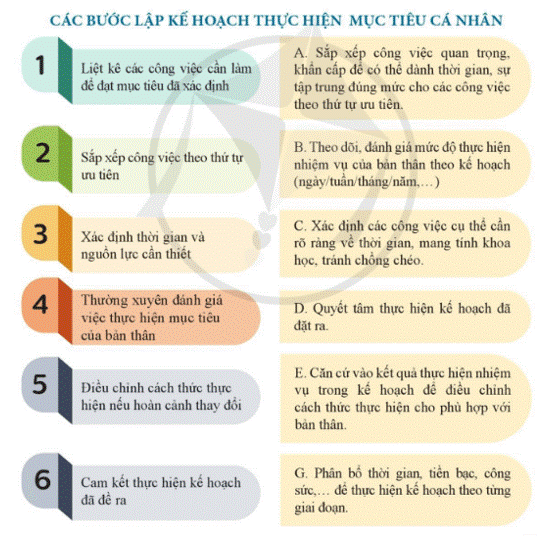 a) Em hãy xác định tên các bước lập kế hoạch thực hiện mục tiêu cá nhân ở cột trải với nội dung tương ứng ở cột phải