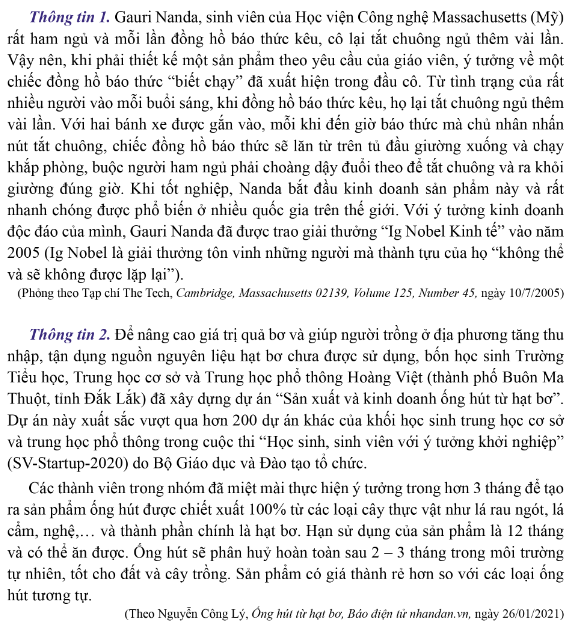 a. – Đọc các thông tin và cho biết nguồn tạo ý tưởng kinh doanh của các chủ thể được nhắc đến ở mỗi thông tin đó.