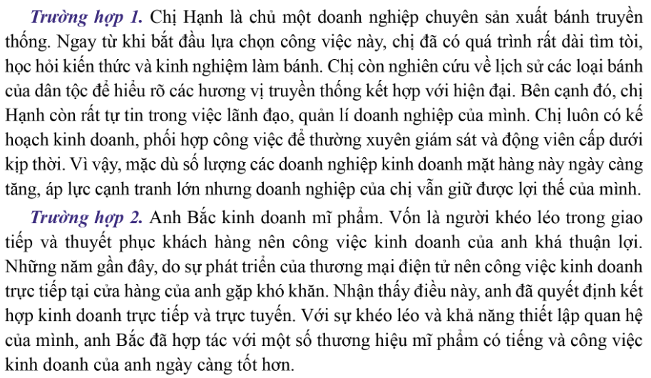 a. Đọc các trường hợp và chỉ ra được những năng lực kinh doanh của các chủ thể trong mỗi trường hợp đó.