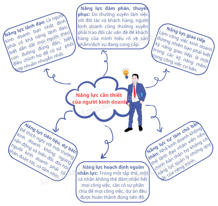 Em hãy vẽ sơ đồ tư duy về các năng lực cần thiết của người kinh doanh và cho biết tầm quan trọng của mỗi năng lực đó.