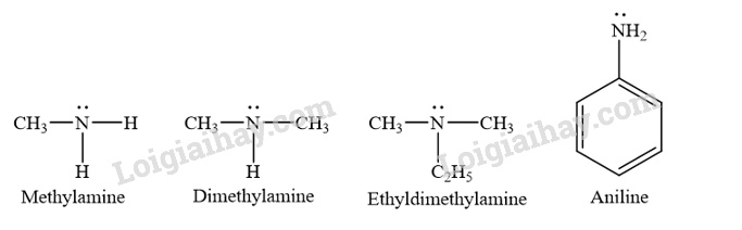 – Đặc điểm cấu tạo: Trong phân tử amine, nguyên tử nitrogen có thể liên kết với 1 hoặc 2 hoặc 3 gốc hydrocarbon.