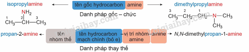 Tên của amine được gọi theo danh pháp gốc chức và danh pháp thay thế: