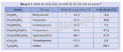 Xác định trạng thái của các amine trong Bảng 8.1 ở nhiệt độ phòng (25 °C).