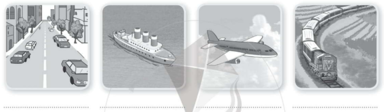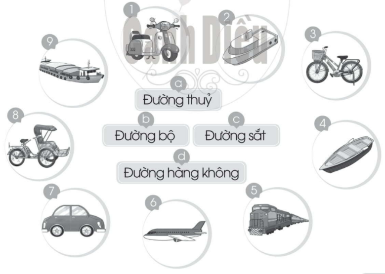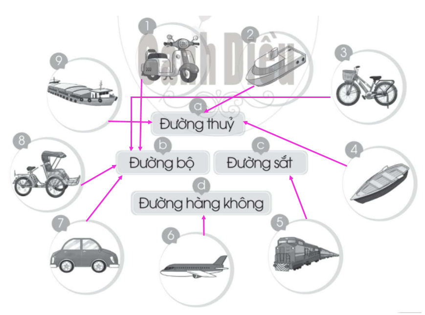 Em quan sát kĩ các hình ảnh để xác định trong đó vẽ phương tiện gì, phương tiện đó đi trên đường nào?