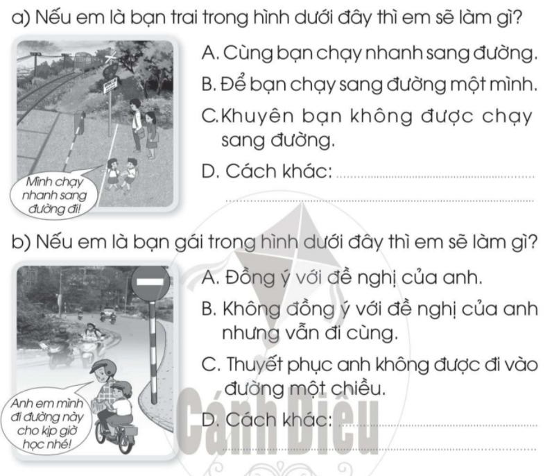 a. Nếu là bạn trai trong hình, em sẽ khuyên bạn không được chạy sang đường
