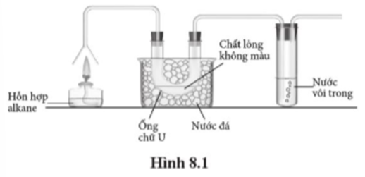 Thực hiện thí nghiệm đốt cháy hỗn hợp alkane lỏng (C10 – C15) như mô tả trong Hình 8.1.