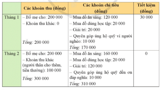 Lưu ý: Học sinh có thể tham khảo kế hoạch chi tiêu sau đây: