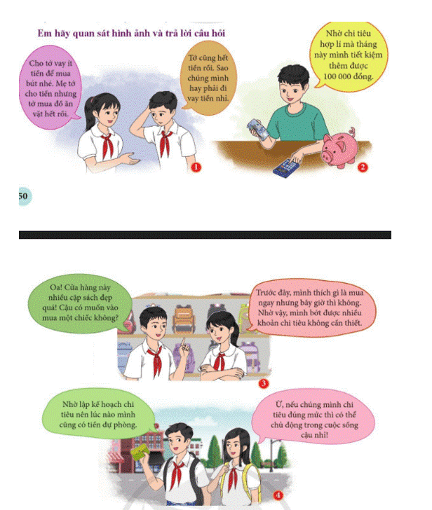 Tranh số 4: cả 2 bạn học sinh trong bức tranh đều biết chi tiêu hợp lí.