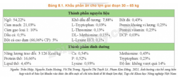 Khẩu phần ăn của vật nuôi là gì? Hãy cho biết thành phần nào trong khẩu phần ăn ở Bảng 8.1 đáp ứng nhu cầu năng lượng.