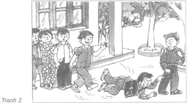 – Tranh 2: Các bạn xô đẩy nhau dẫn tới việc bị vấp ngã.