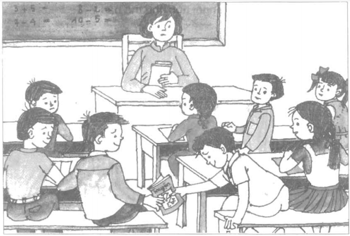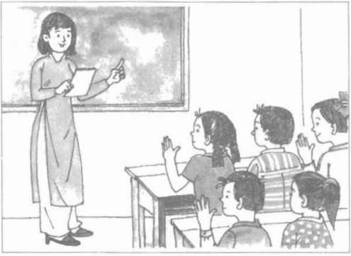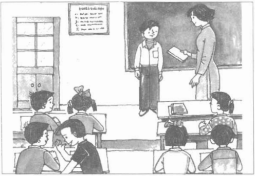 Em quan sát xem trong lớp bạn nào hướng lên bục giảng nghe cô giáo giảng bài.