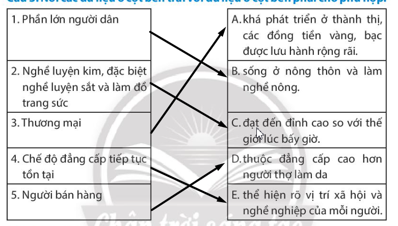 Nối các dữ liệu ở cột bên trái với dữ liệu ở cột bên phải cho phù hợp.