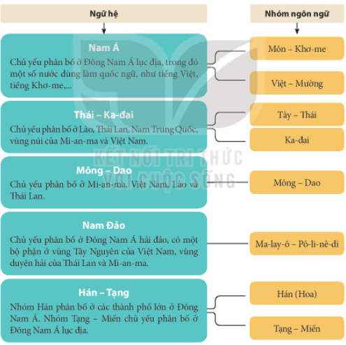 8. Các ngữ hệ chủ yếu ở khu vực Đông Nam Á bao gồm:
