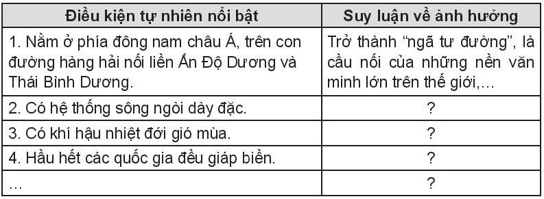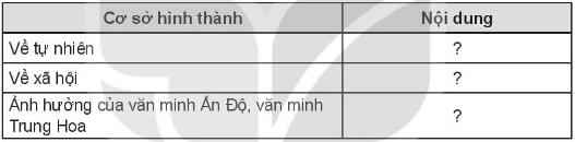Bài tập 5. Lập bảng tóm tắt về cơ sở hình thành văn minh Đông Nam Á (theo gợi ý dưới đây)