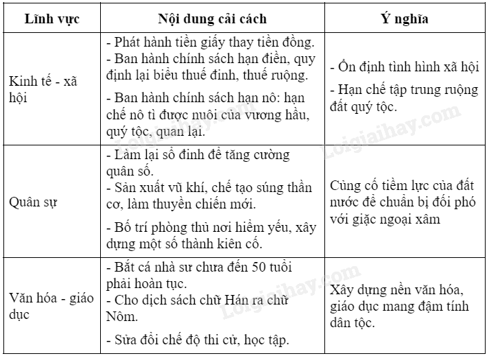 * Ý nghĩa: Cuộc cải cách có ý nghĩa trong việc bước đầu ổn định tinh hình xã hội, củng cố tiềm lực của đất nước để chuẩn bị đối phó với giặc ngoại xâm.