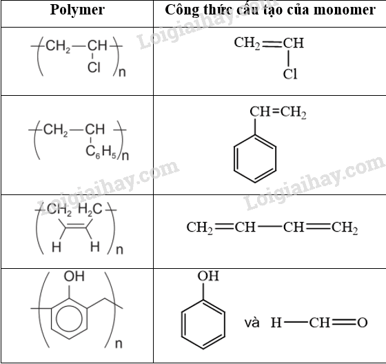 Cho biết công thức cấu tạo của monomer tương ứng với polymer trong Hình 9.1.
