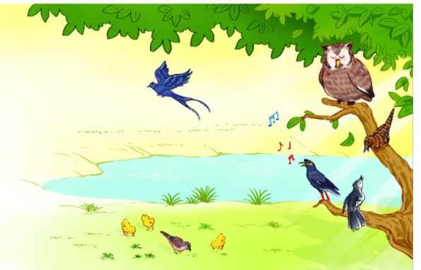 – Loài chim mà em muốn giới thiệu là chim cú mèo. Thời gian hoạt động của nó là về đêm. Cú mèo thường bắt chuột, loài vật gây hại cho mùa màng của các bác nông dân.